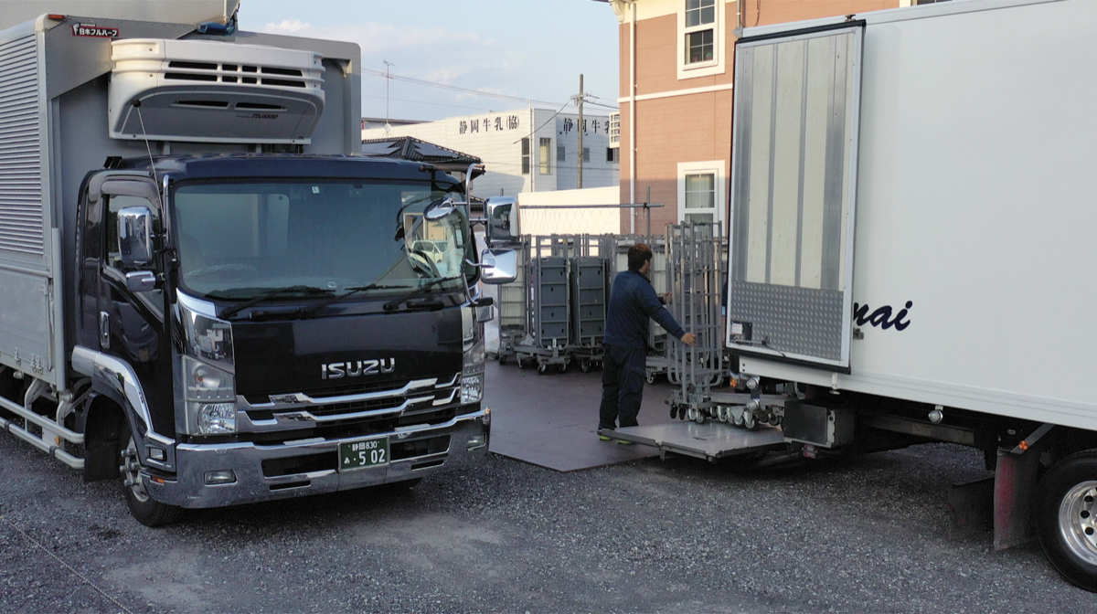 当社は、多種多様な車両を駆使し、全国各地への輸送を行っています。乗務員にはフォークリフト免許取得者も多く在籍しており、自主荷役作業も柔軟に対応可能です。